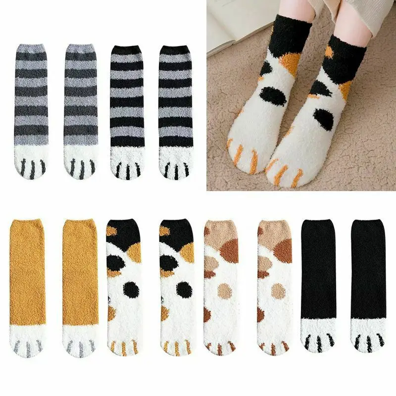 Зимние теплые носки с кошачьими лапами для женщин, носки для сна дл...