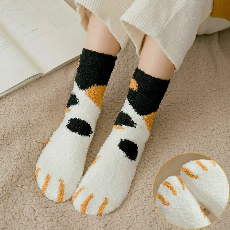 Зимние носки с кошачьими когтями, милые толстые теплые носки для сн...