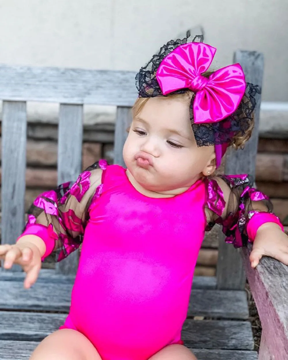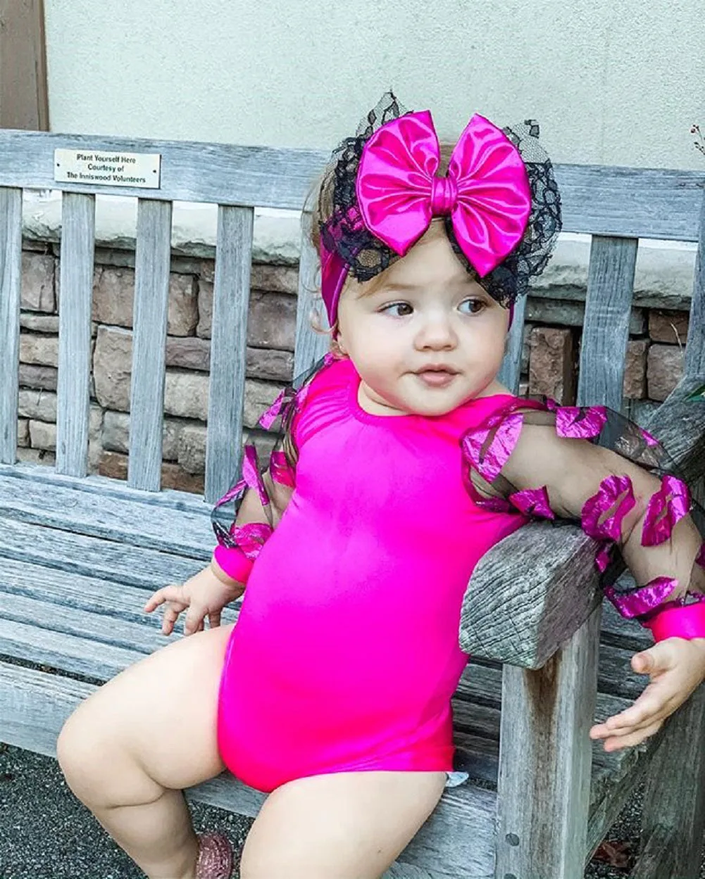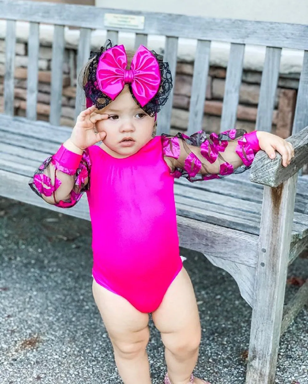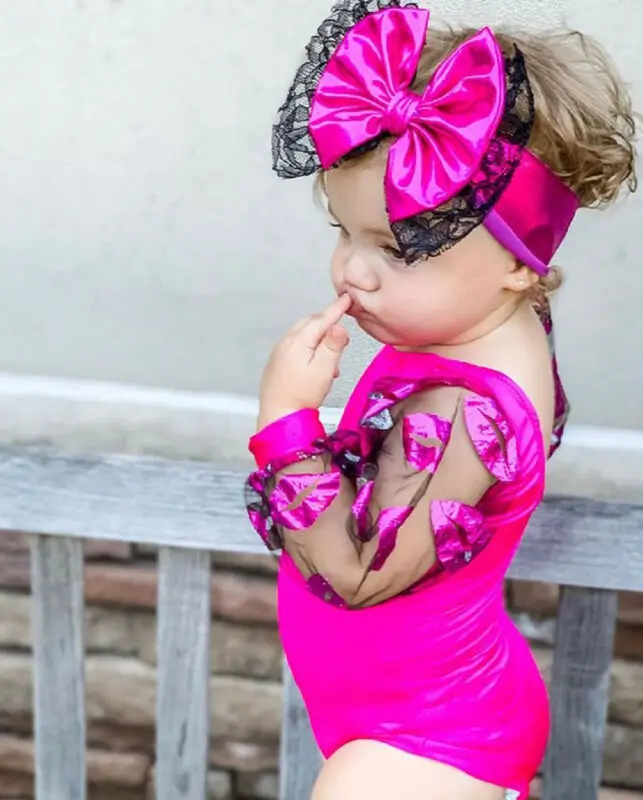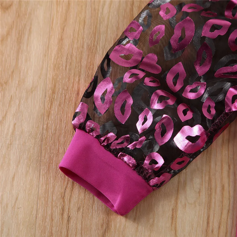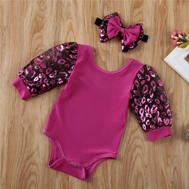 Комбинезоны для новорожденных девочек 0-18 мес., кружевной комбинезон с длинным пышным рукавом и принтом губ для новорожденных, пурпурные блестки, боди для маленьких девочек, наряд