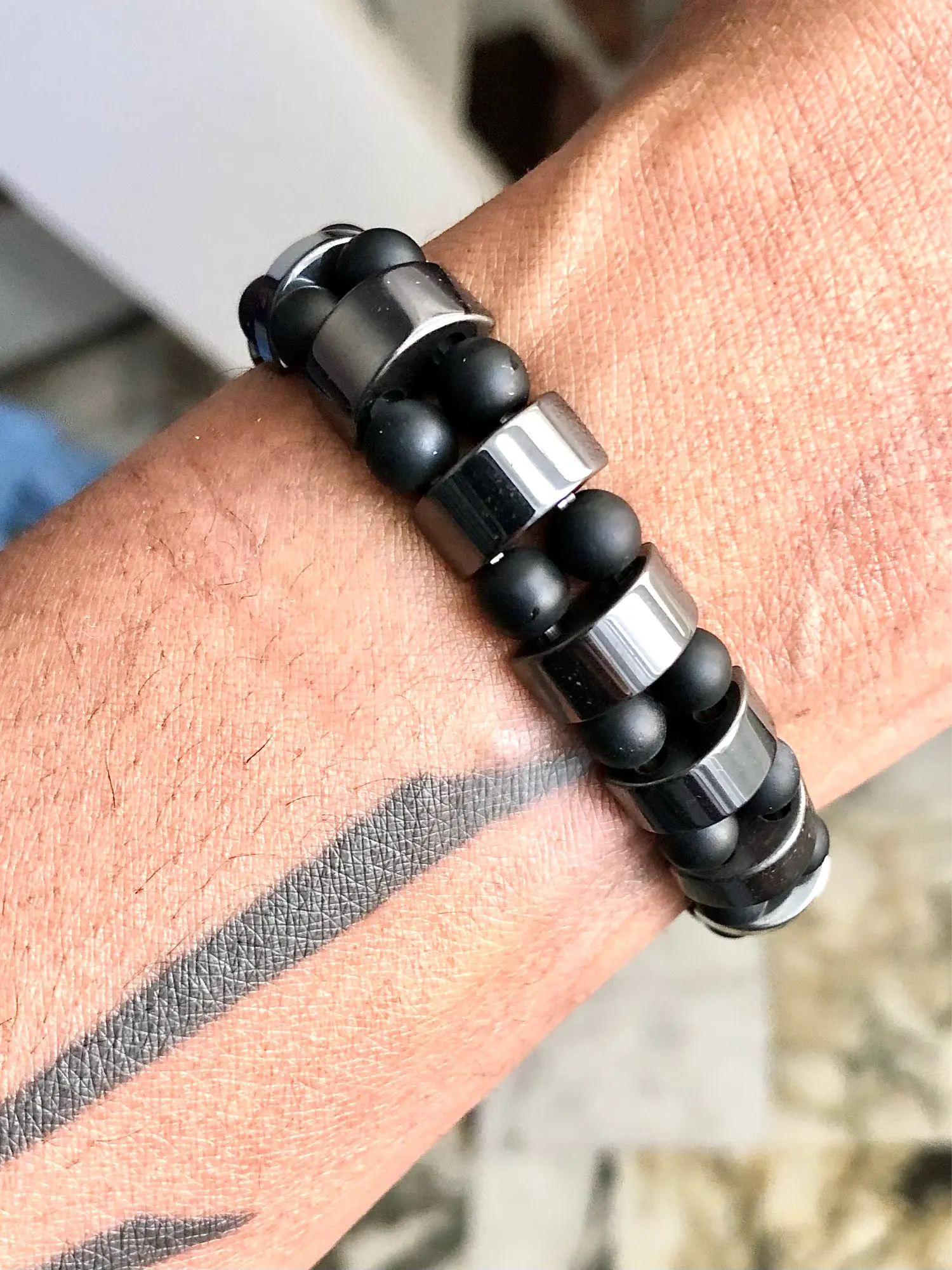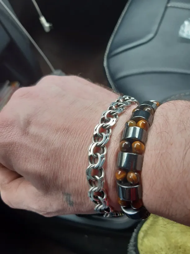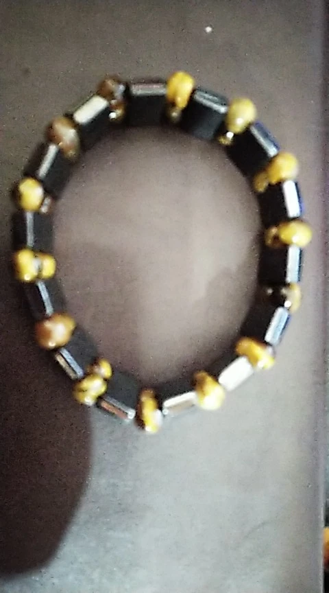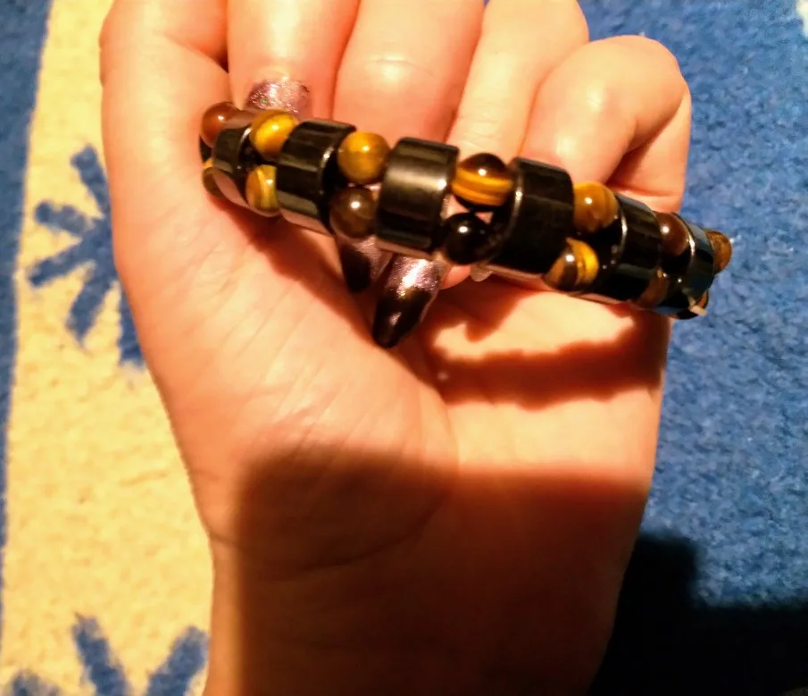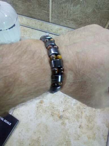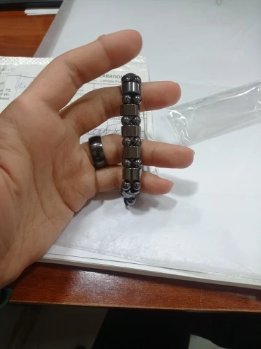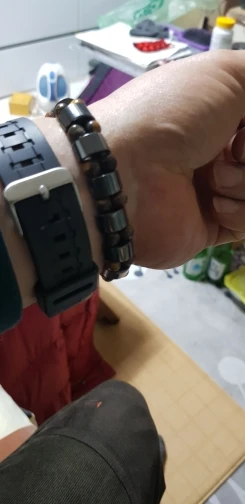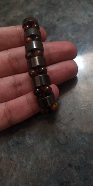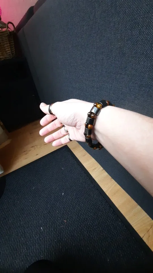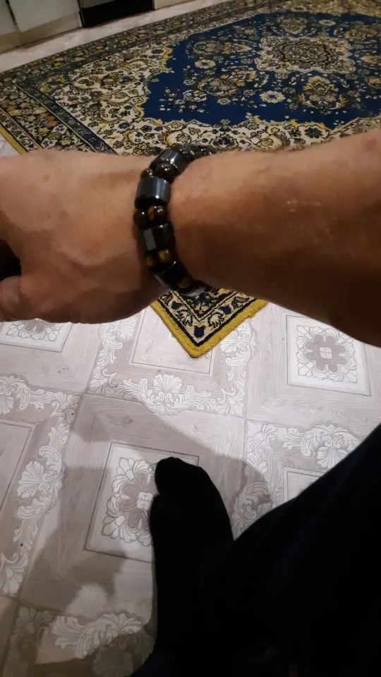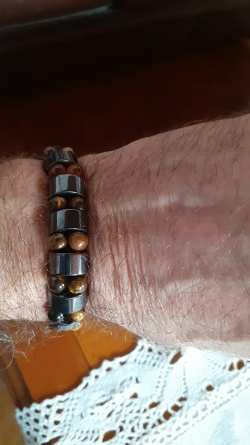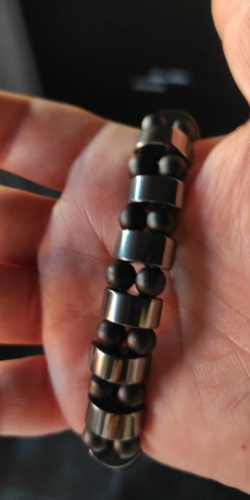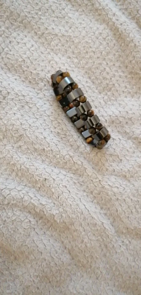 мужу понравился браслет. немного магнитится. только кончики торчат немного у резинки, но думаю исправим. закажем и в другом цвете