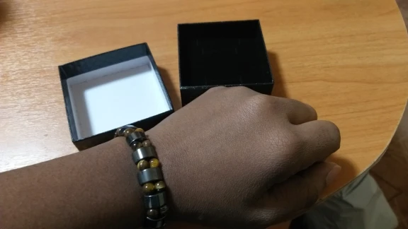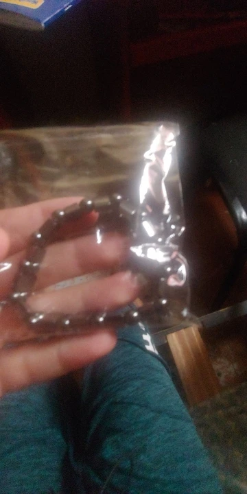 Материал очень прочный и браслет красивый, но единственный недостаток, который я вижу, это то, что он очень маленький, поэтому, если у вас очень большая рука, я не рекомендую вам покупать его, но в остальном все хорошо.