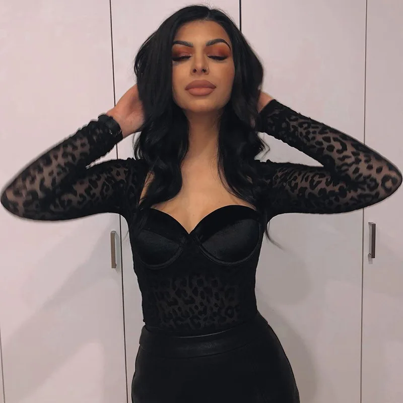 Женские Боди 2021 летние леопардовые сетчатые прозрачные кружевные ...
