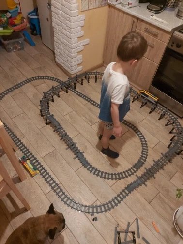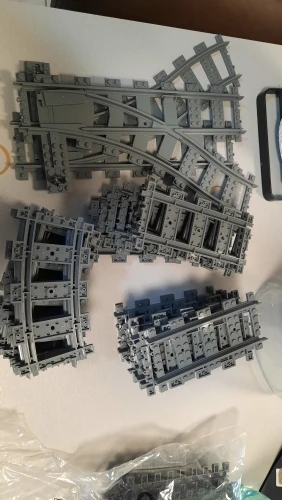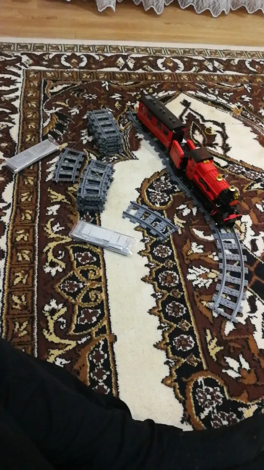 Отличные рельсы. Цвет как оригинал lego. Защёлкиваются чуть плотнее чем оригинал, не разъединяются если "пнуть" как lego. Одна стрелка пришла сломана (сам механизм), вероятно слетели пружинки. Из-за этого не переключает стрелку - приходится пальцем передвигать дорожку рельсы. Поезд бывает из-за этого сходит с рельс. Доставили очень быстро в пятёрочку. ====================== Good rails. Color are the same as original lego. They snap a little tighter than the original, do not separate if "kicked" like lego. One of the arrow mechanism was broken. Probably the springs have fallen from their place. I need to move rails part manually with my finger (no resistance is felt)