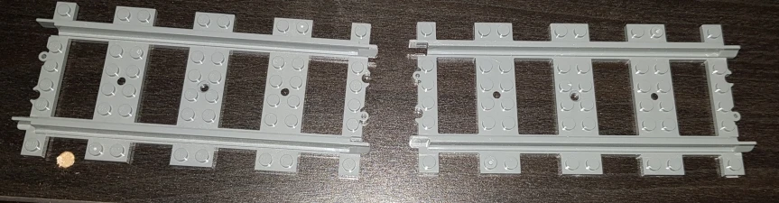 it is a slightly lighter grey than actual lego track, but links in well and the train had no issues.