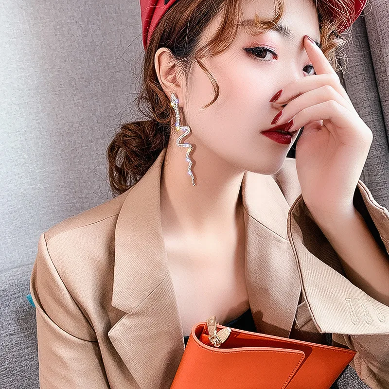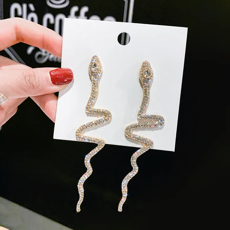 Лидер продаж, модные корейские ювелирные изделия, крупные блестящие серьги с кристаллами, индивидуальные серьги в виде змеи для вечеринки для женщин