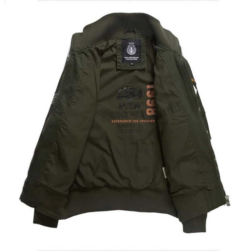 Мужская куртка-бомбер в стиле милитари, осенне-зимняя повседневная однотонная куртка-бомбер на молнии, новая приталенная мужская куртка с воротником-стойкой и вышивкой, 2021