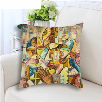 Наволочка из хлопка и льна с Африканским абстрактным портретом и HD...
