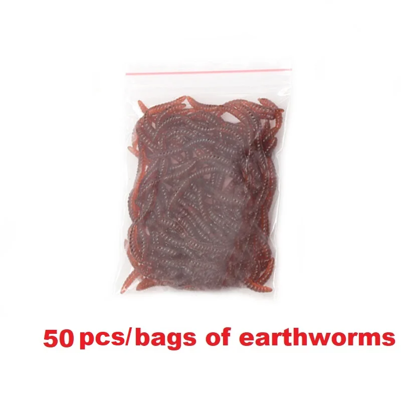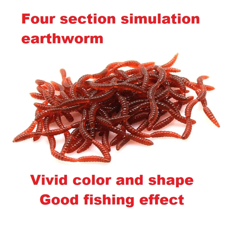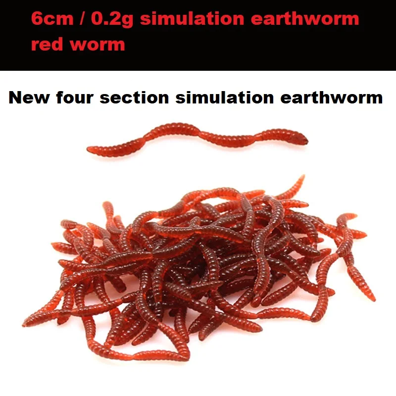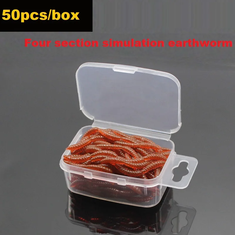 Приманка рыболовная, 50 шт.лот, 4 секции, имитация дождевых червей, Мягкая приманка для рыбалки, 6 см0,2 г, красные черви, искусственный рыбный запах, реалистичные приманки