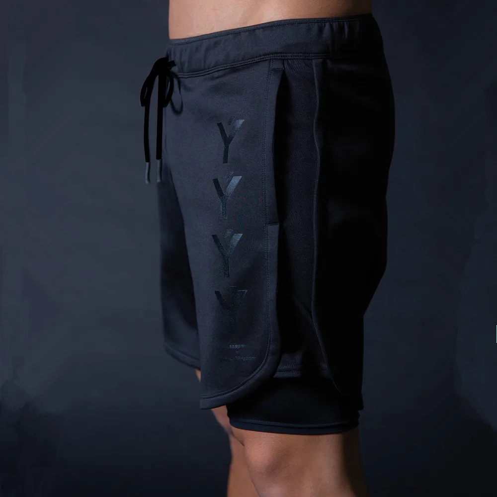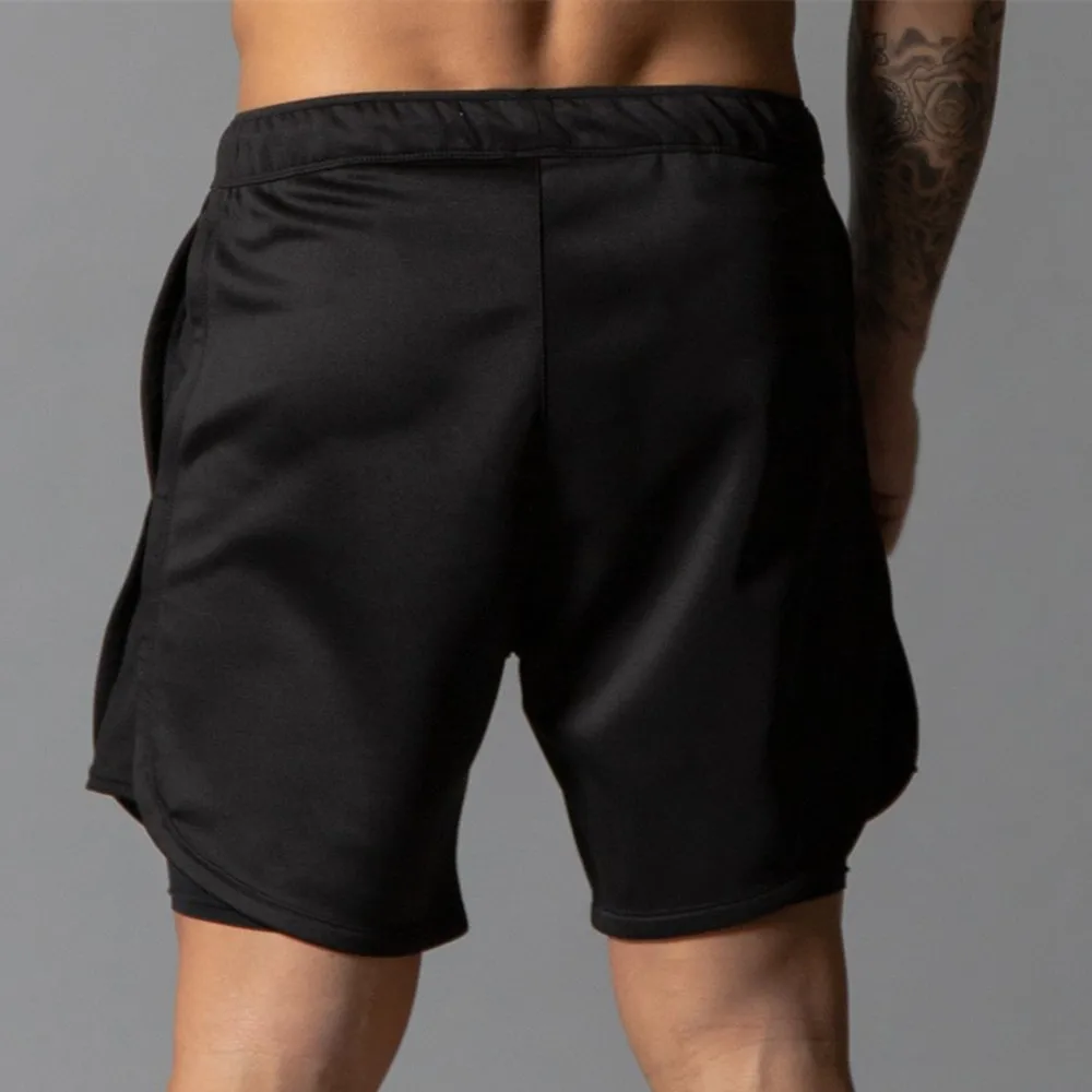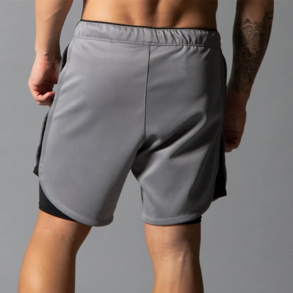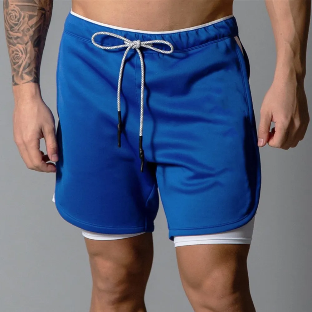 Шорты мужские спортивные 2 в 1, двухслойные короткие штаны, спортивные Бермуды для фитнеса, бега, тренировок, Летние повседневные быстросохнущие пляжные шорты