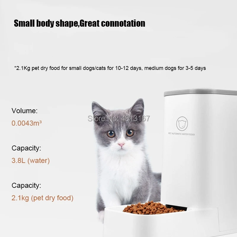 Предназначен для домашних животных, более изысканный и компактный, чем когда-либо, покрывающий площадь 0,045м ² меньше, чем бумага А4, но все еще сохраняет 3,8л воды/2,1 кг сухой еды для домашних животных.