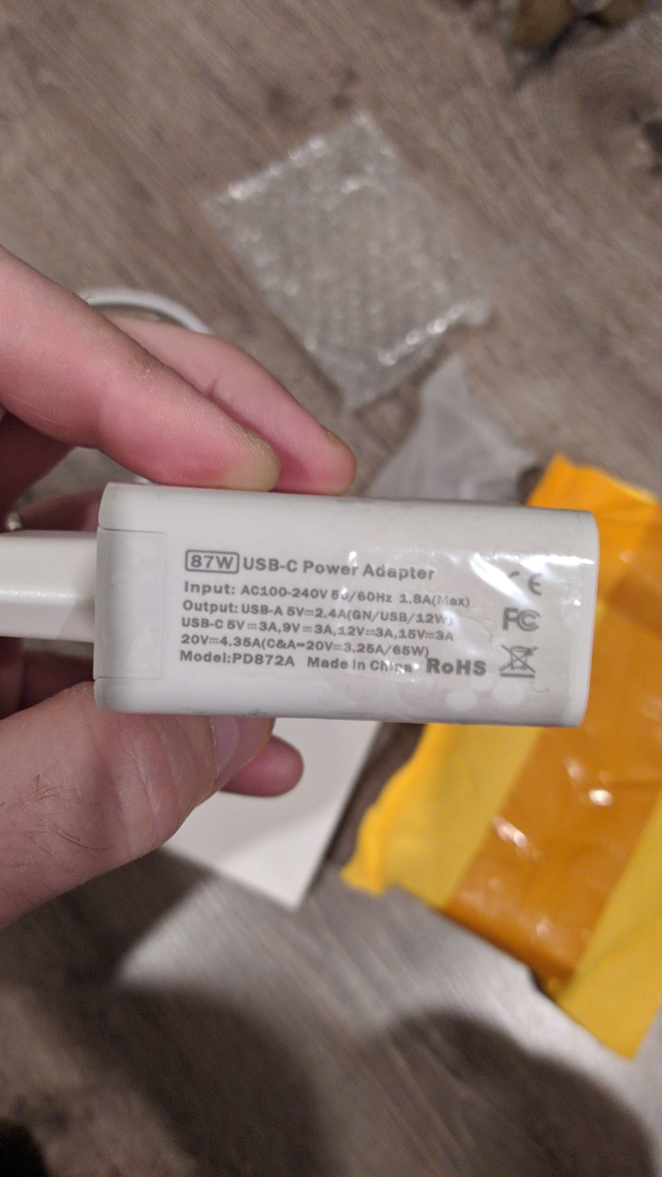 Устройство было хорошо упаковано. Подходит для питания ноутбука через порт USB-C. Нет необходимости в стандартном адаптере питания.