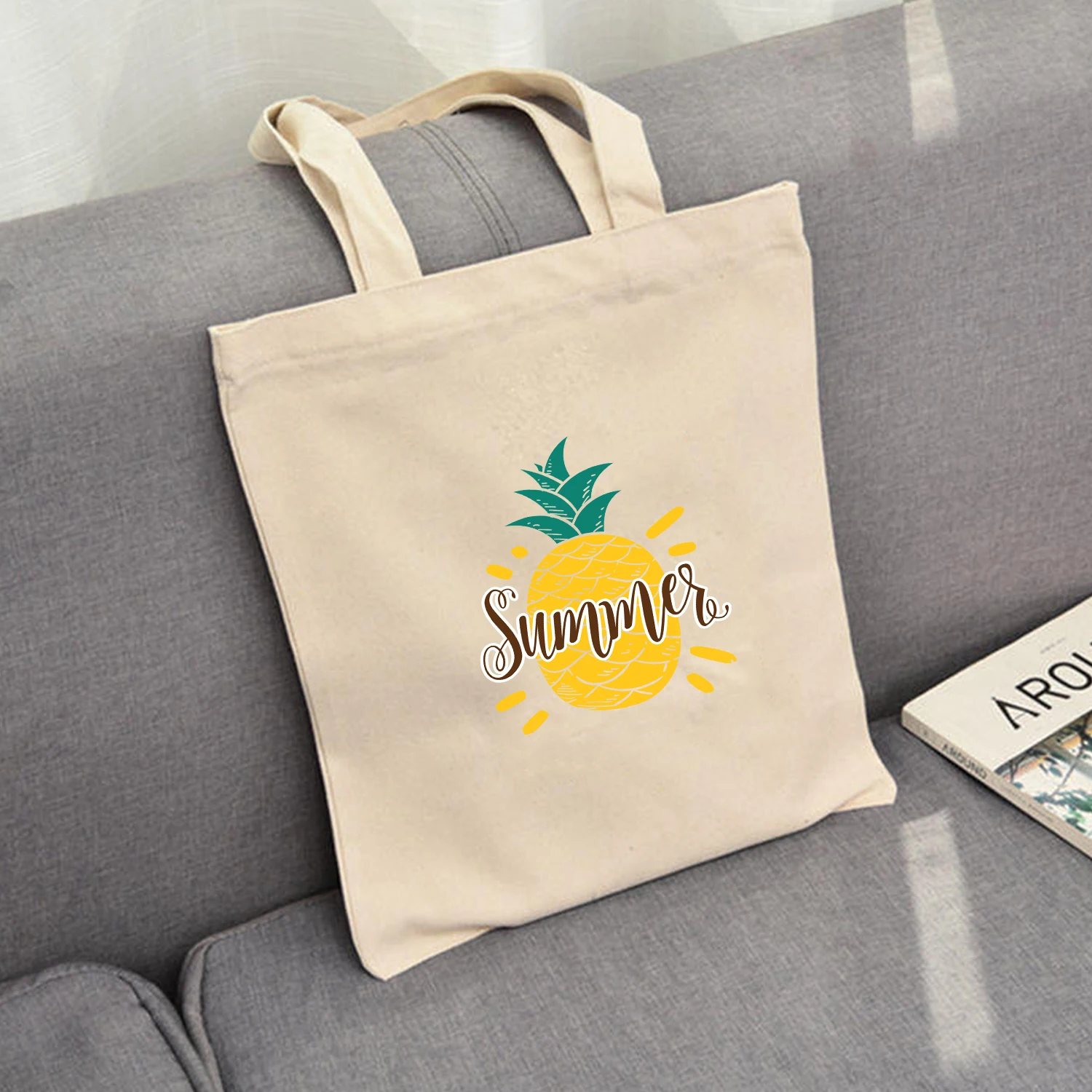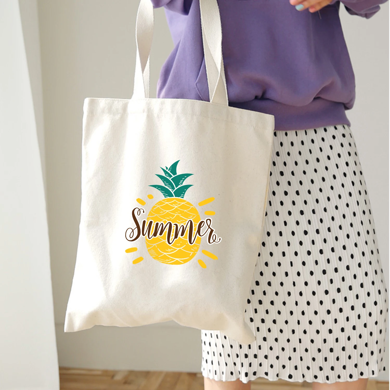 Симпатичная Женская Холщовая Сумка через плечо с рисунком ананаса из мультфильма, Экологичная женская сумка-тоут, многоразовые сумки для покупок для продуктов, забавные