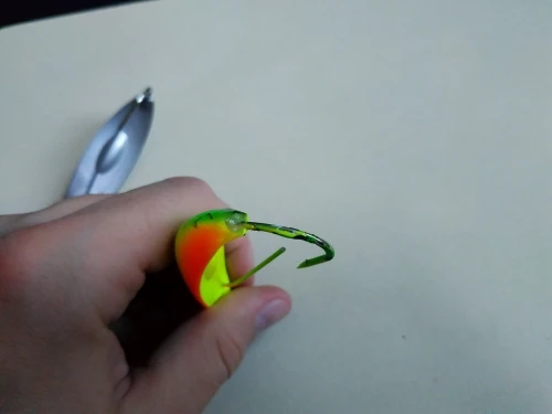 Крючок огромный. Сделали бы немного поменьше нормально всё было бы. На него только акул ловить.