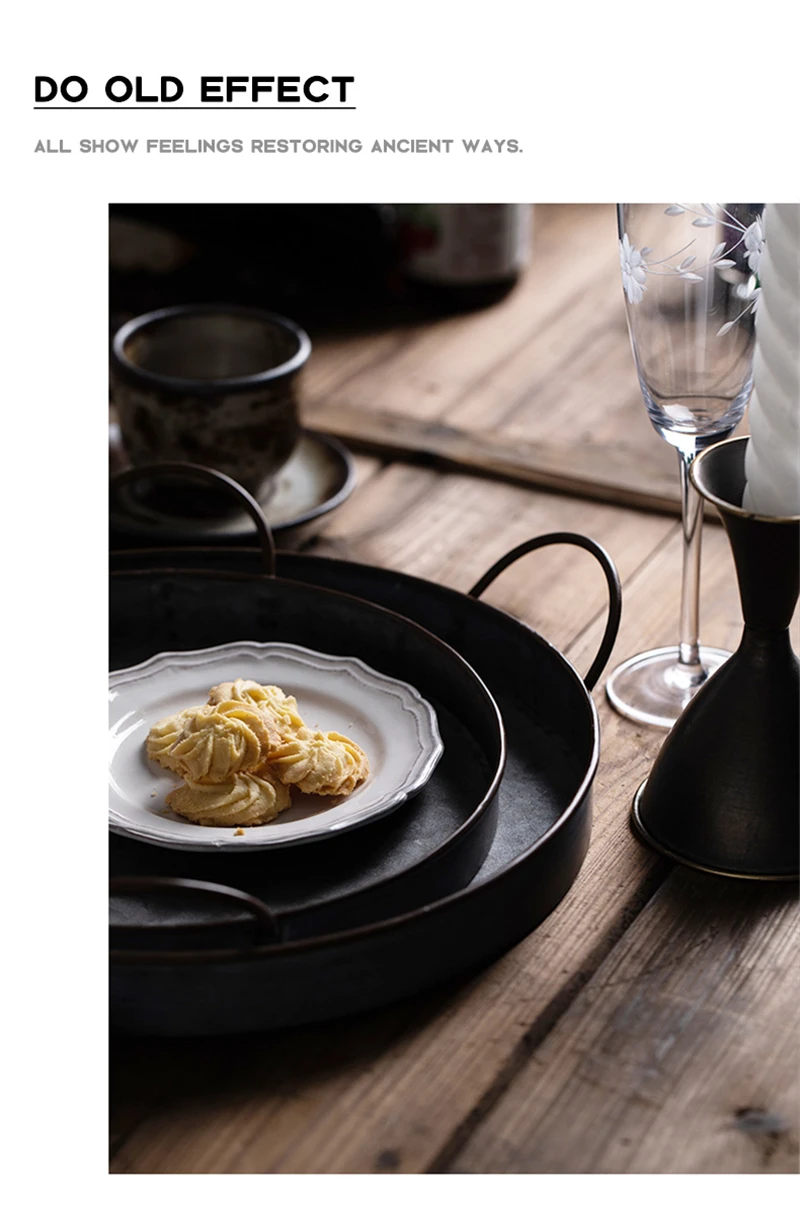 Европейский ретро круглая железная тарелка с ручками металлический ...