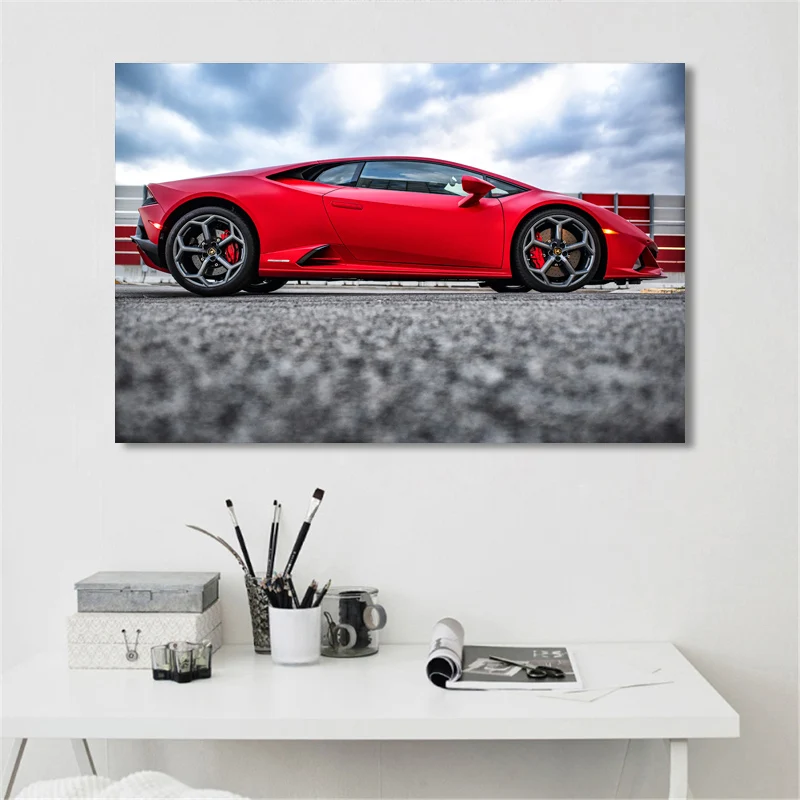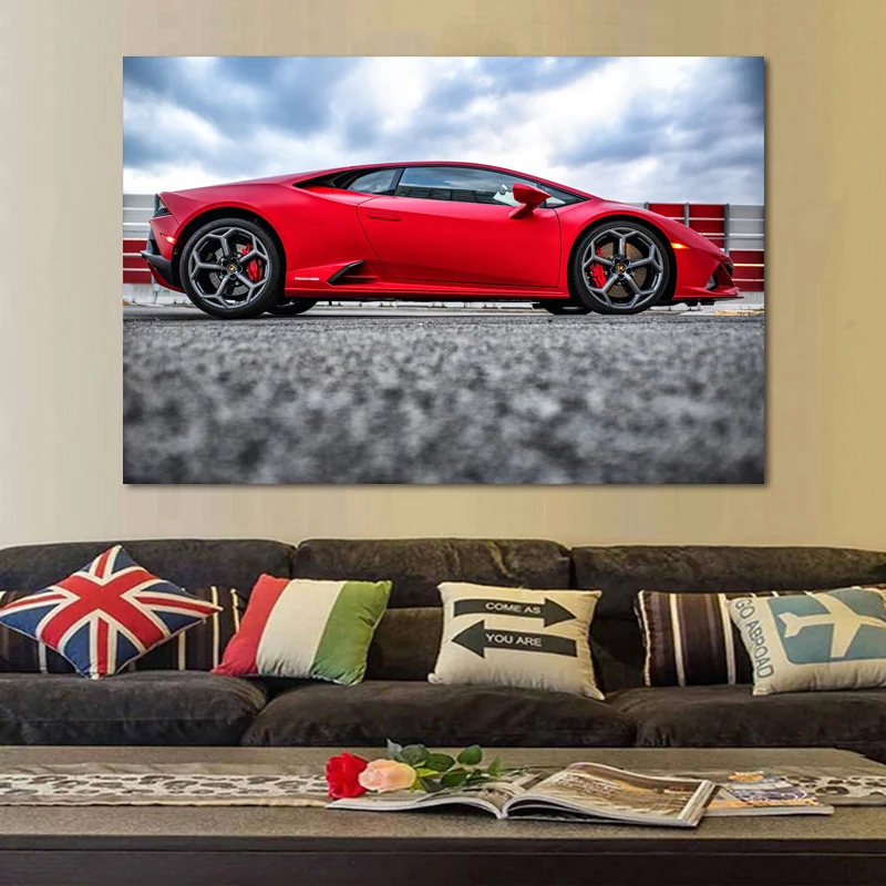 Художественные настенные картины Huracan EVO с изображением Красного автомобиля, суперкар, постеры и принты для декора гостиной