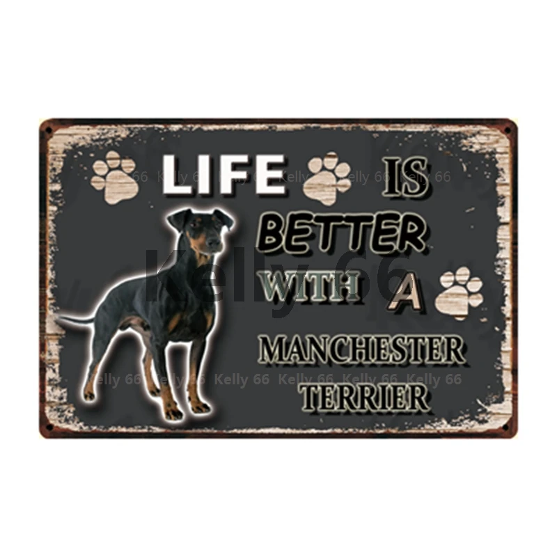 Kelly66 собака жизнь лучше с немецкой овчаркой ирландский терьер Металлический Знак Домашний Декор Бар настенная живопись 20*30 см размер Dy127