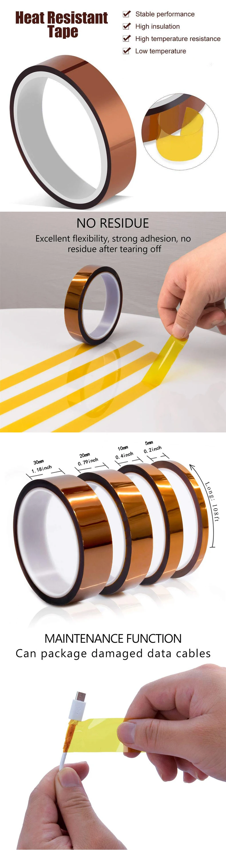 33 м 100 футов термостойкая лента теплоизоляция полиимидная клейкая изоляционная клейкая лента электронная BGA лента