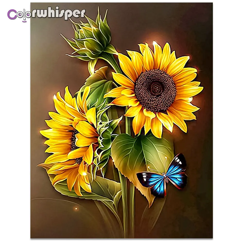 Алмазная живопись 5D, полная вышивка, квадратнаякруглая вышивка, Подсолнух, Бабочка, вышивка крестиком, мозаика, картина, кристалл, подарок D225