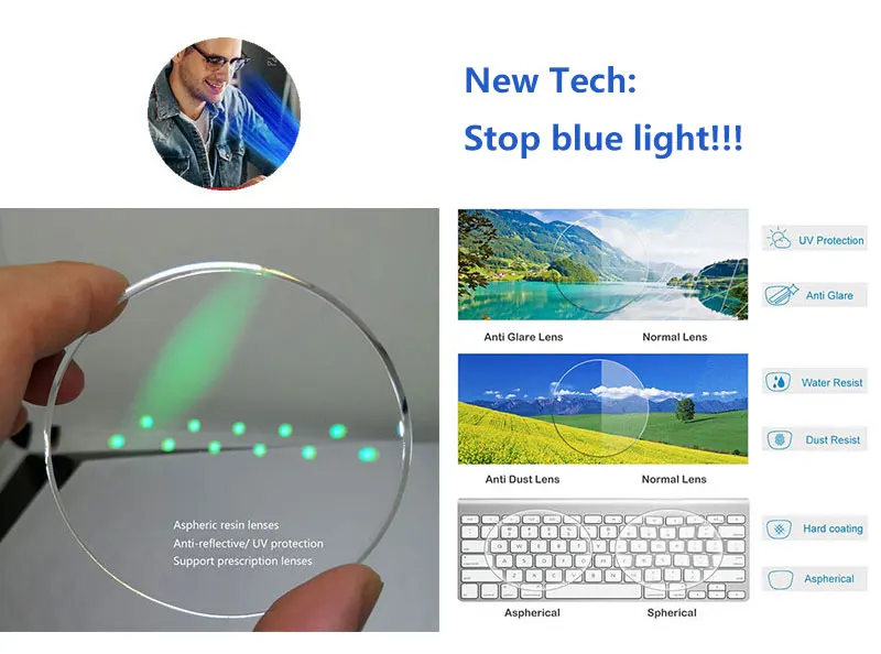 Детали линз: линзы с оптической четкостью, зеленое покрытие, антибликовое покрытие, защита от излучения, блокировка на синий светильник