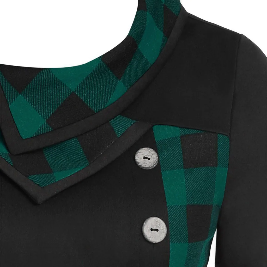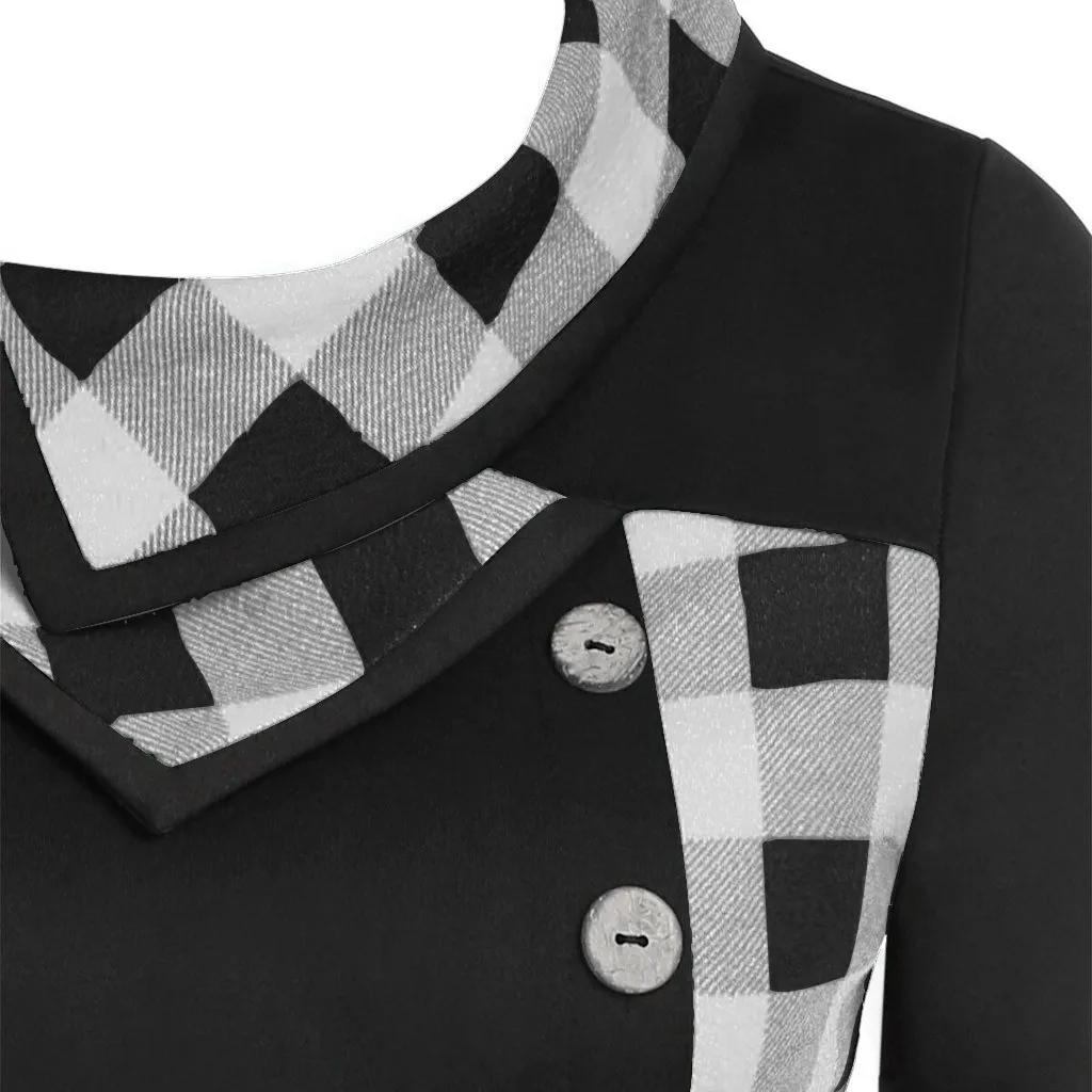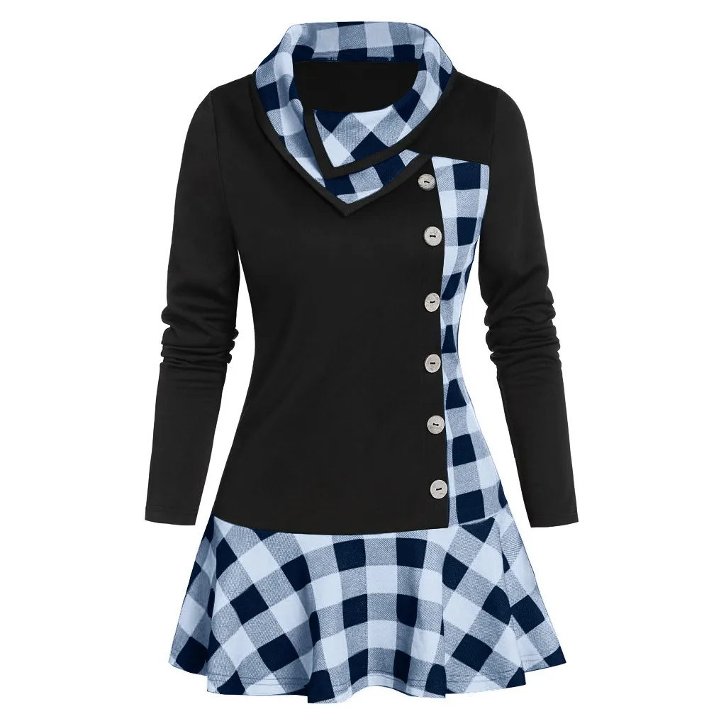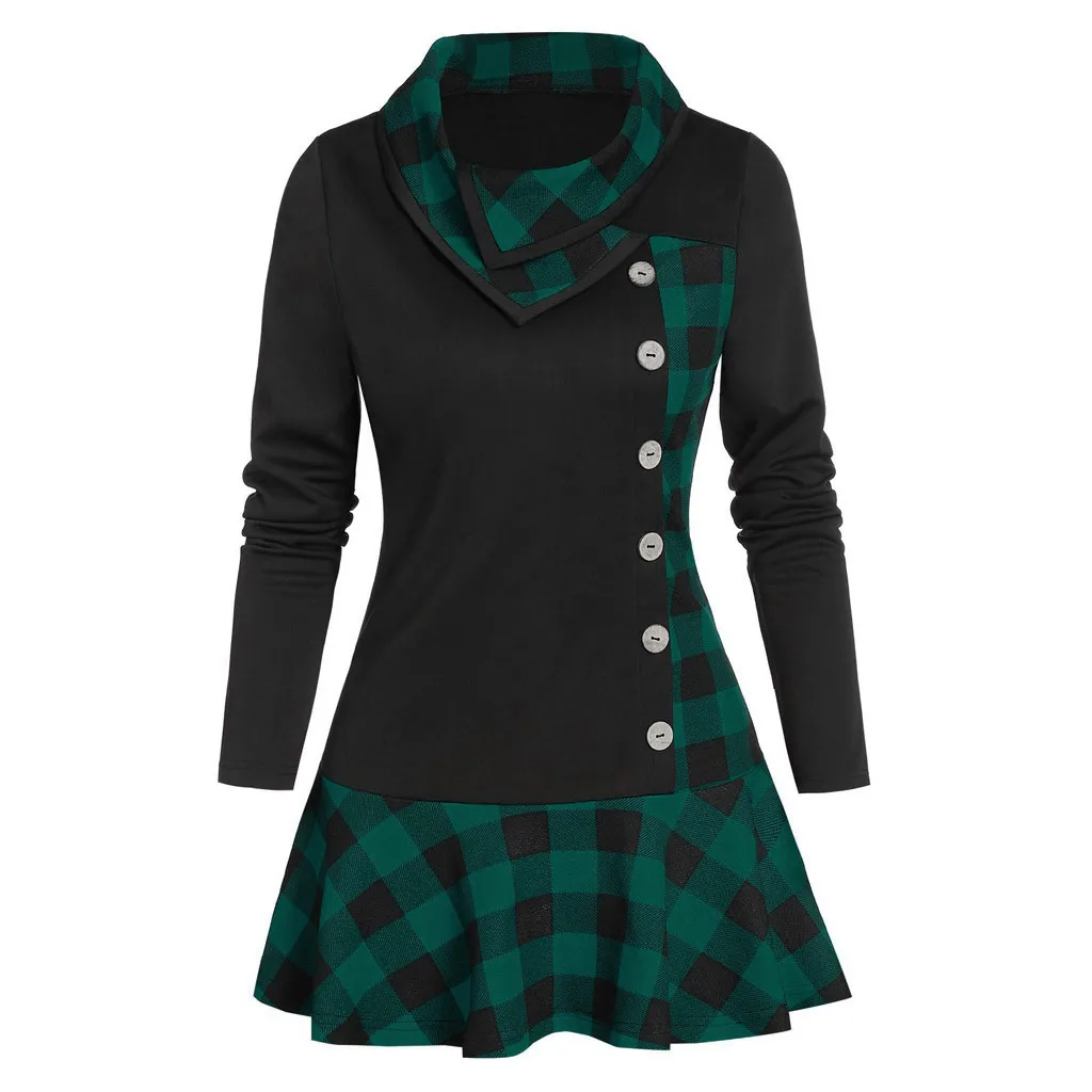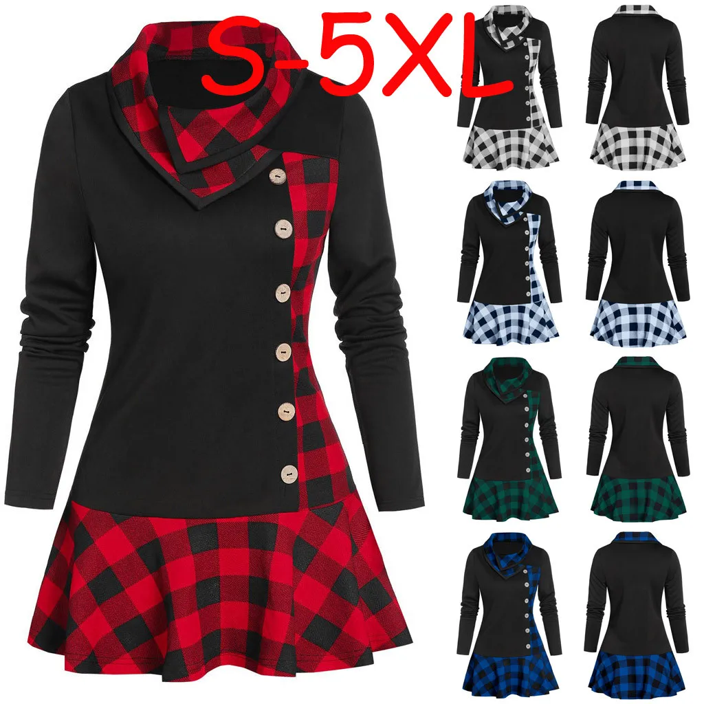 1. Особенности: размера плюс, на пуговицах, воротник-хомут, в клетку, с принтом, с длинными рукавами, пэчворк, топы, блузка, Простой Топ, модная блуза