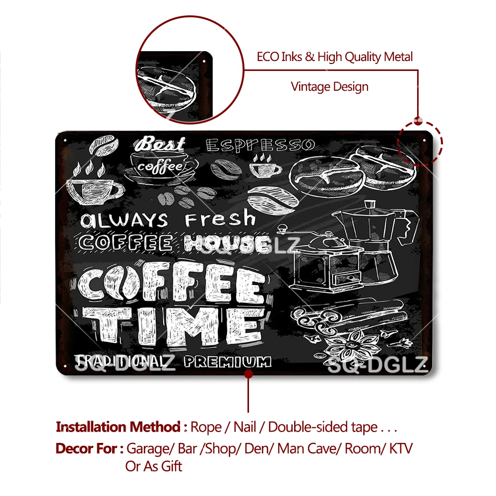 Металлический знак для кофе, металлический винтажный декор для паба...