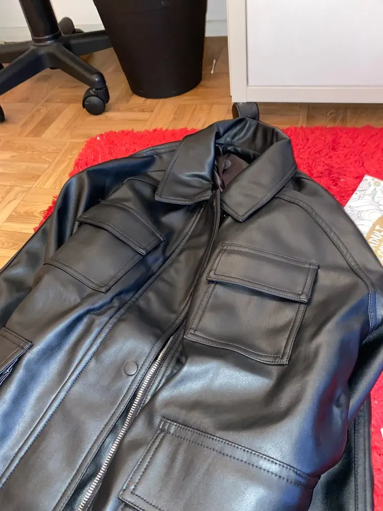 Куртка очень красивая, как в описании, но на мне просто огромная. Брали размер S. Относительно тонкий לleather leather ל leather кожа. Спасибо продавцу