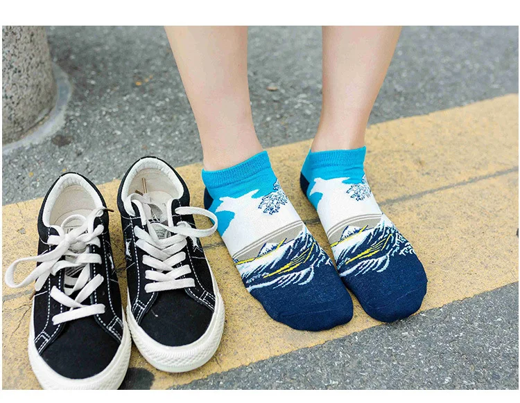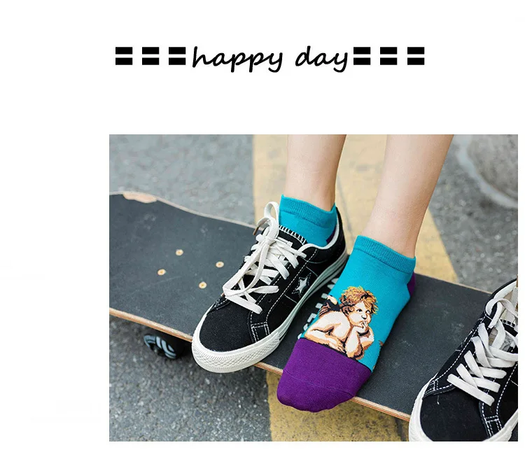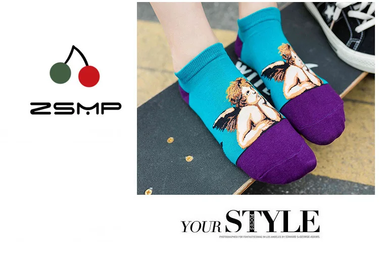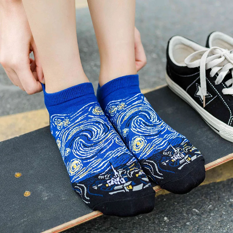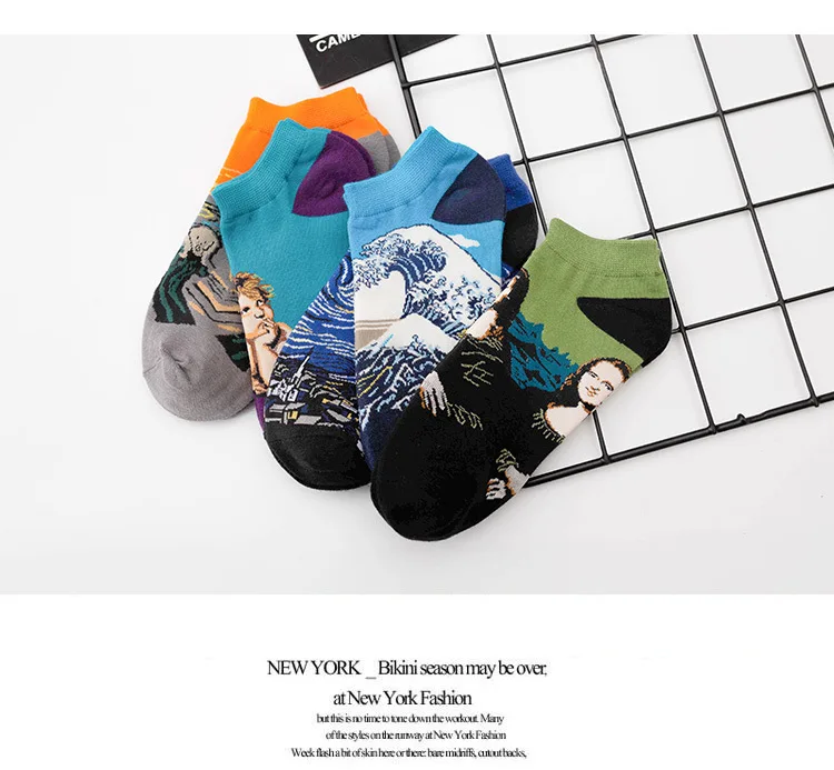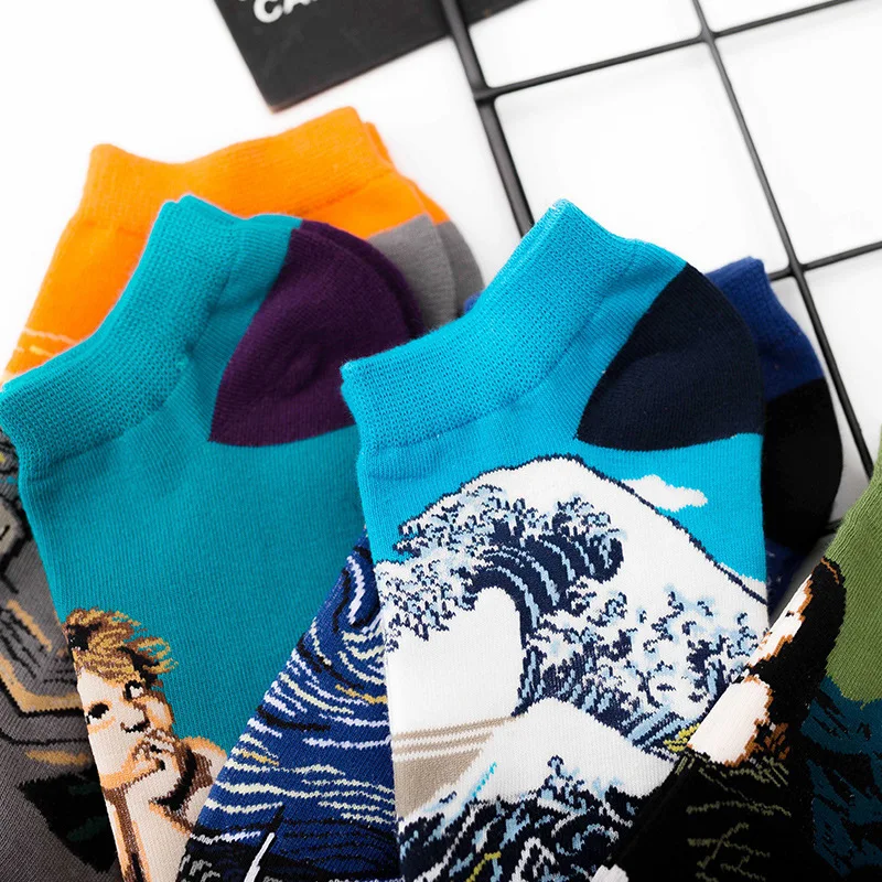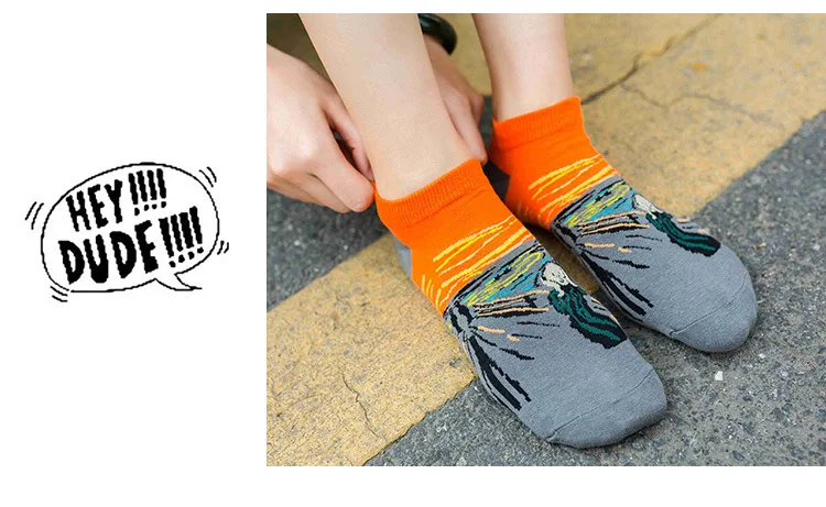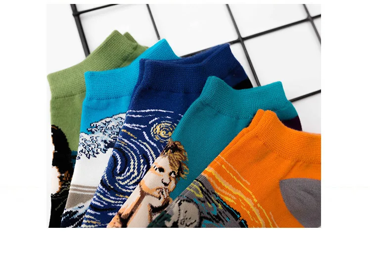 Для женщин стиль; Новинка; В стиле ретро; В искусство панно всемирно известный серия масляной живописи Забавный ангел "Мона Лиза" Крик "Ван Гог", "Звездное небо короткие носки