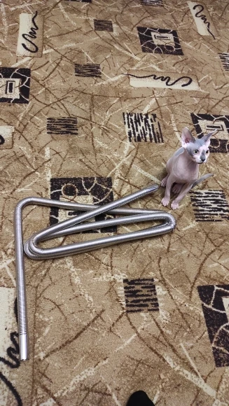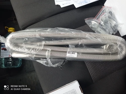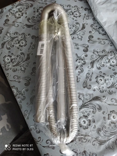 Быстрая доставка, есть отслеживание. Длина 59см вместо 60см. Показалось что металл тоньше чем у металлорукава от отопителя, но померил штангенциркулем, вроде одинаково, но металл мягче.