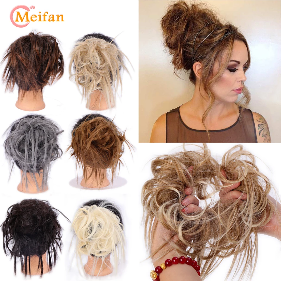 Синтетический натуральный шиньон MEIFAN, аксессуары для женщин, пучок волос, прямые волосы, Пончик, накладной хвост, накладной хвост, удлинитель волос