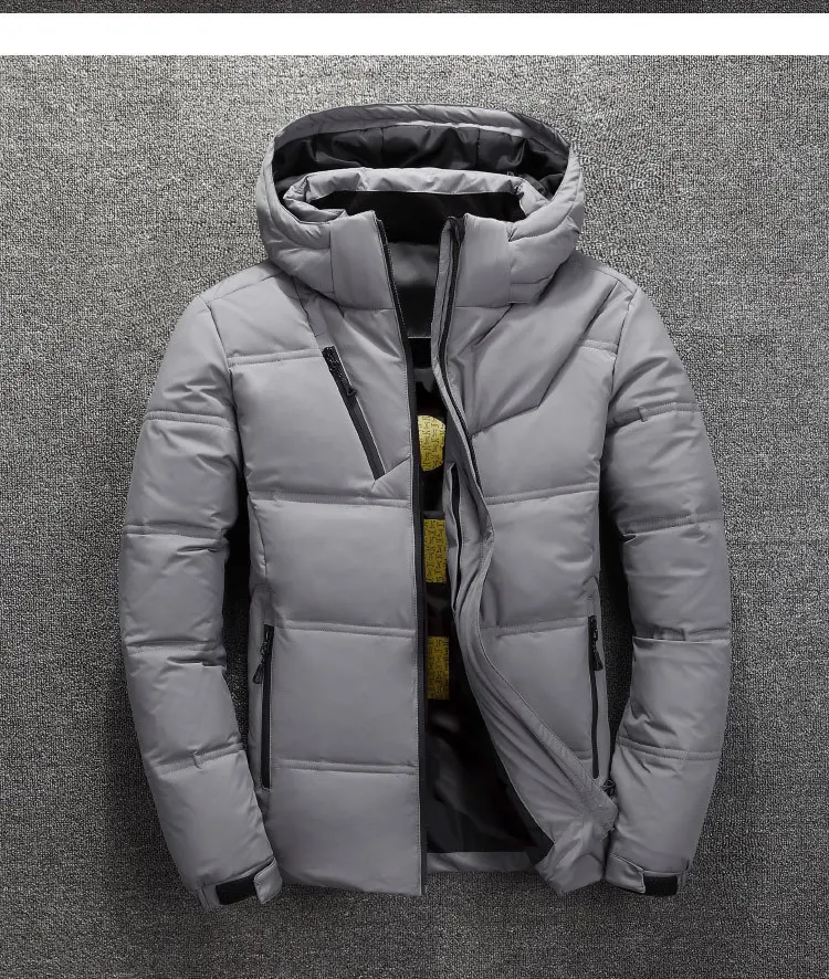 FGKKS качественный брендовый мужской пуховик, тонкий плотный теплый однотонный пуховик с капюшоном, модные повседневные мужские пуховики