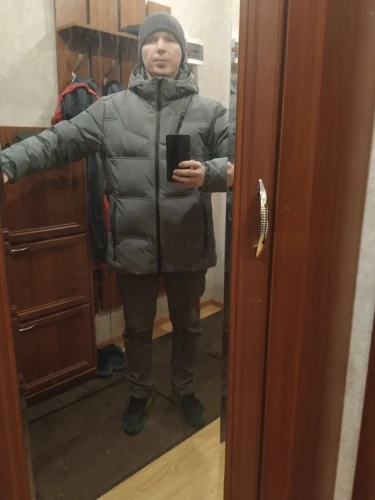 Очень хорошая куртка. Качественно пошита. Подошла идеально. Реальный пуховик на не очень холодную зиму. Цвет оказался больше хаки чем заявлен в описании, но смотрится отлично. Спасибо продавцу!