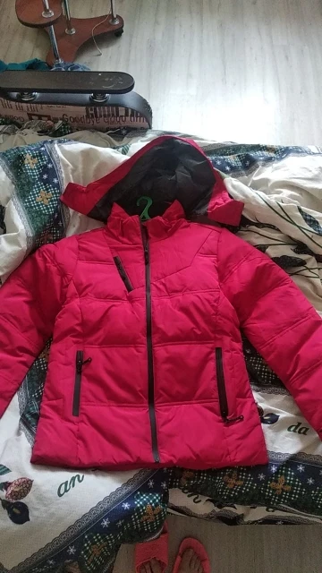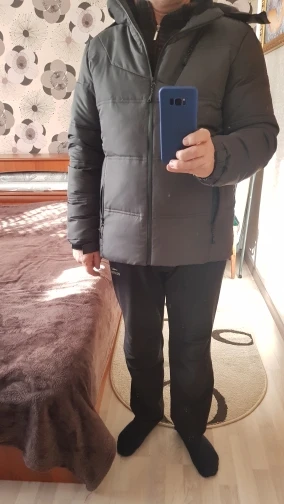 Посылка прибыла быстро. Это хорошая куртка, но она не выглядит как зимняя, она тонкая. Выглядит более плотным на картинке. Мы проверим его зимой. Ну, это на размер больше! Хорошо подходит.