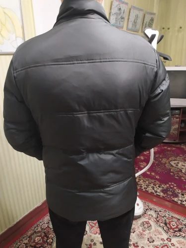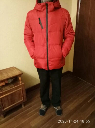 Заказ пришёл довольно быстро. Заказал 12.11., а 23,11. курьер доставил прямо к подъезду. Размер подошёл. На рост 175, 54 размер - заказал 4хl. Куртка тоненька. На температуру, максимум - 10, - 15 по Цельсию. Кое где лезит пух. Куртка до первой стирки. На один раз. Но, думаю, для своей цены сойдёт.