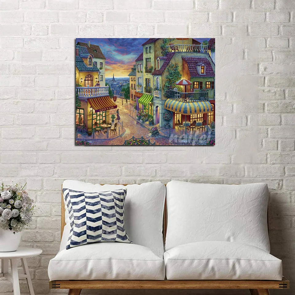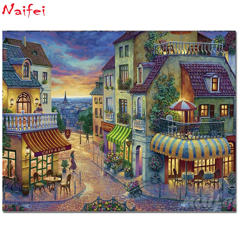 Алмазная 5D картина сделай сам, полноразмернаякруглая 3d-вышивка, вышивка крестиком, пейзаж Вечеринка в Париже, городской уличный магазин, Декор