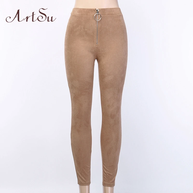 Женские брюки-карандаш Artsu, из искусственной кожи, с высокой талией, цвета хаки, черного цвета, леггинсы узкие Стретч, ASPA70102, 2020