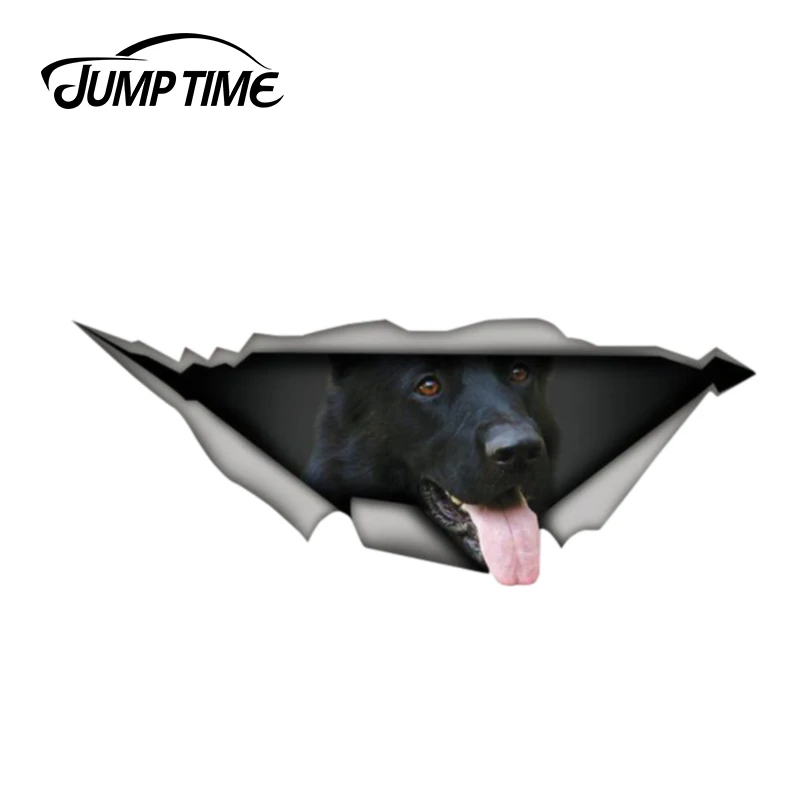 Время прыжка 13 см x 4,8 см наклейка немецкой овчарки рваный металлический бампер наклейка забавная наклейка для автомобиля окно багажника животное 3D Стайлинг автомобиля