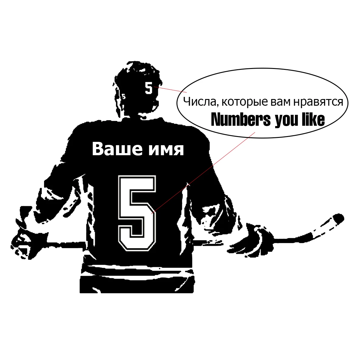 Настенная Наклейка с хоккеем и игроком, наклейка с выбранным именем и номером, персонализированный домашний декор, Настенная Наклейка для детской комнаты, виниловые искусства