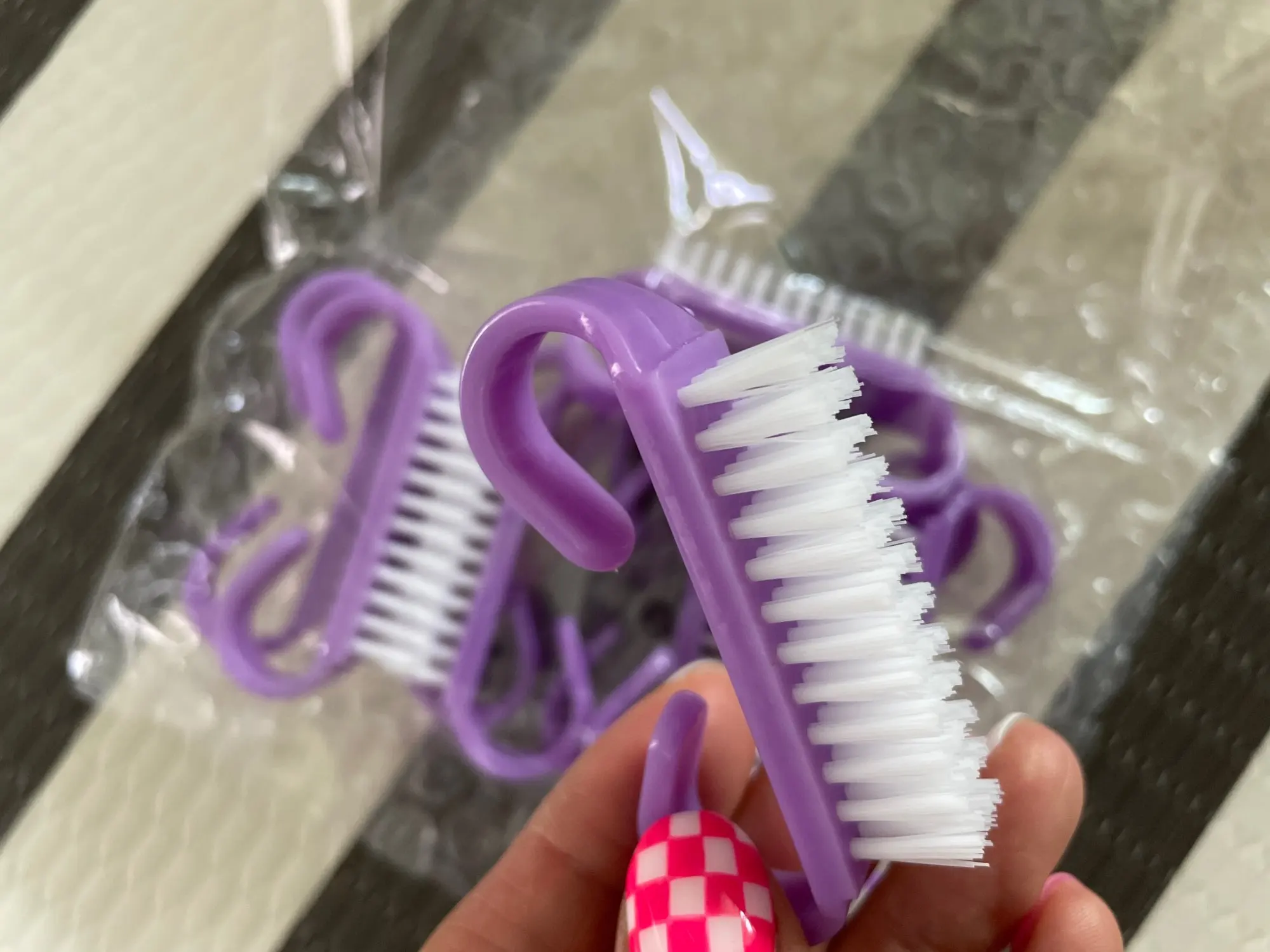 10 шт., пластиковые щетки для очистки ногтей, с ручкой