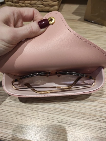 Доставка до СПб около 2 недель. Соответствует фото, сделан качественно, без брака. Похоже на натуральную кожу, но не уверена. Не очень нравится, что внутри твердая вставка из пластика, и кожа тоже без мягкого покрытия, надеюсь, очки царапаться не будут.