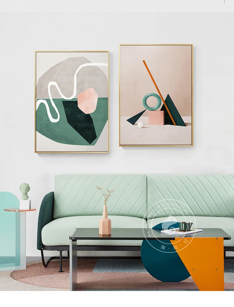 Абстрактная красочная Геометрическая живопись на холсте модный плак...