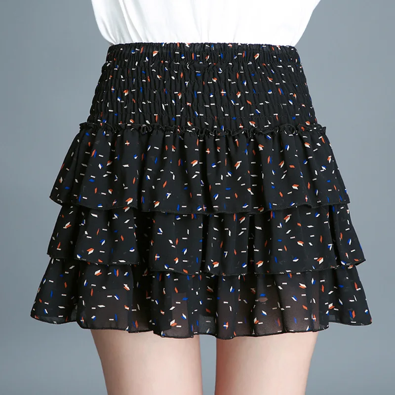 Юбка женская плиссированная с эластичным поясом, шифоновая Милая японская школьная мини-юбка для девушек с цветочным принтом, черная, белая, C458