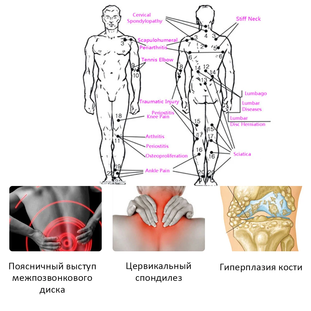 4. Периартрит плеча, грыжа поясничного диска, боль в спине, синяки, ревматоидный артрит, гиперплазия костей