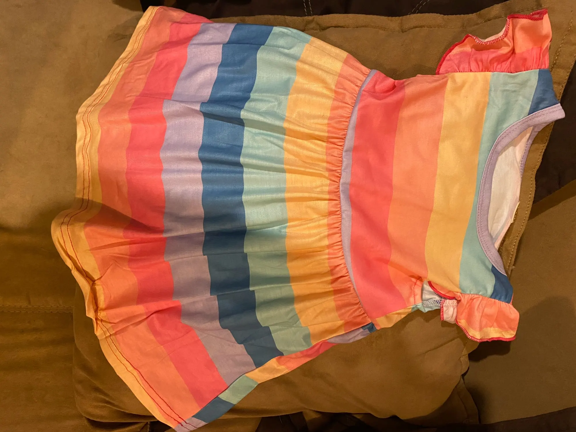 Детское Хлопковое платье, с радужными полосками, ТРАПЕЦИЕВИДНОЕ, для девочек, летняя, 2020, От 0 до 3 лет