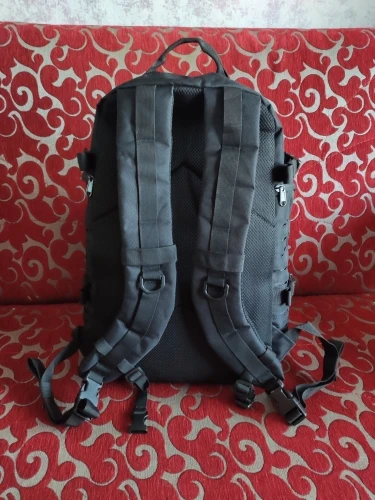 Товаром полностью доволен. Качество отличное, нитки не торчат, фурнитура отличная, хлястик на замках металлические, но не дешевые (на фото паракорд). Я полностью доволен рюкзаком, а хлястик стоят копейки и уже давно заказаны. Сравнил размеры с самым распространенным рюкзаком который видел каждый (можете примерно понят размеры товара).