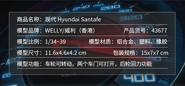 WELLY 1:36, Классическая модель автомобиля Hyundai Santafe, из мета...