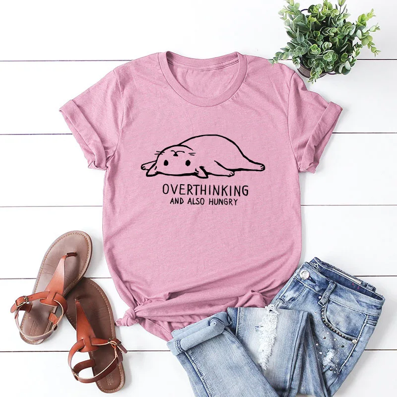 Футболка женская повседневная с круглым вырезом, Модный повседневный Свободный Топ с котом, 100% хлопок, с коротким рукавом, размера плюс, на лето