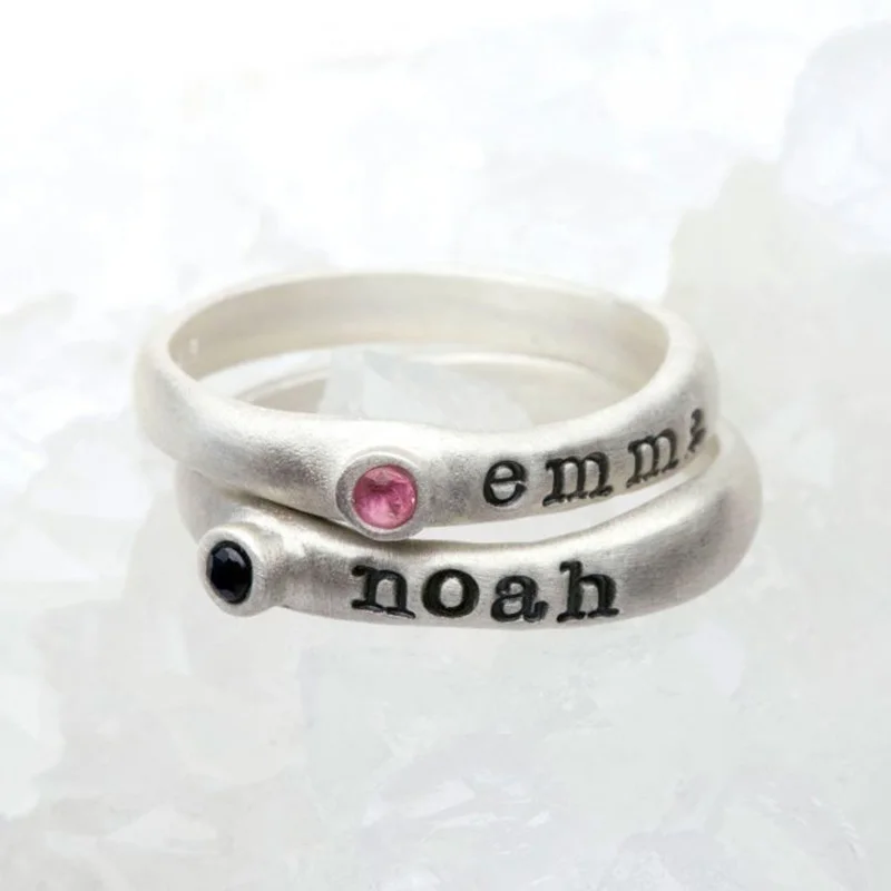 Кольцо Xiaojing из серебра 925 пробы, с выгравированным именем, с камнем, тройное, штабелируемое, ювелирные изделия на заказ, 2019