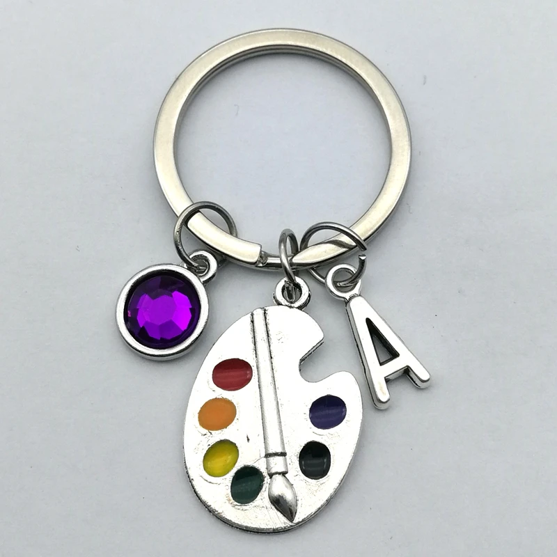 2020 Новый артборд брелок "кисть" кулон буквы A-Z креативная палитра брелок драгоценный камень Серебряный Шарм художник брелок Выпускной подарок