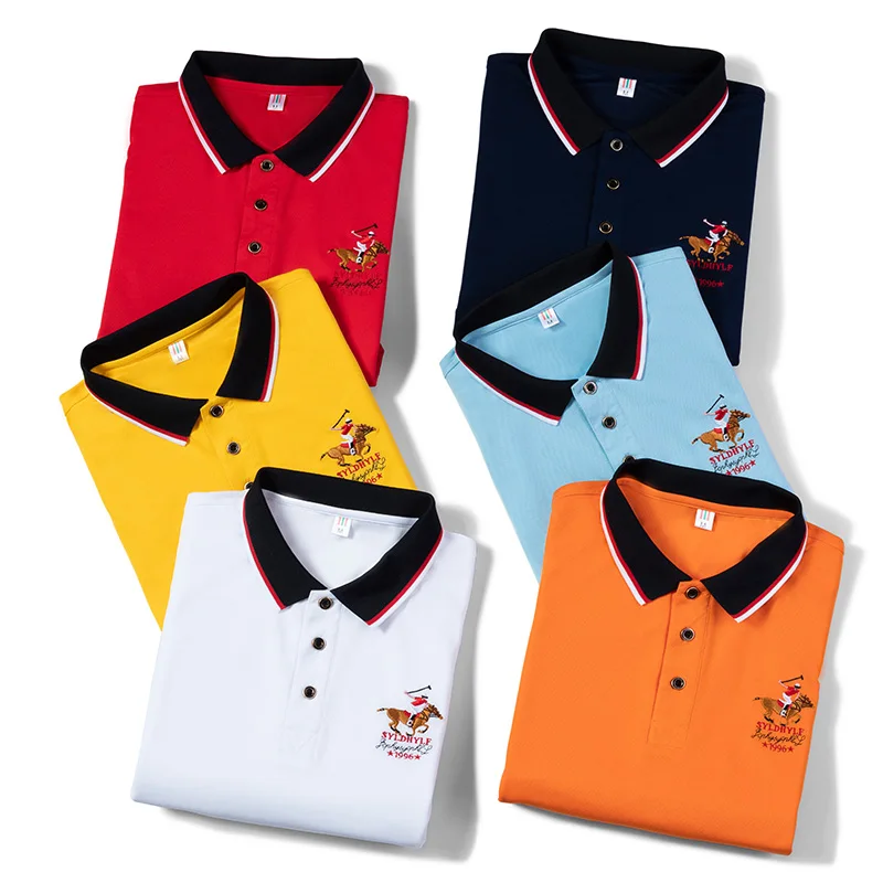 Рубашка-поло мужская с вышивкой, из синтетического волокна