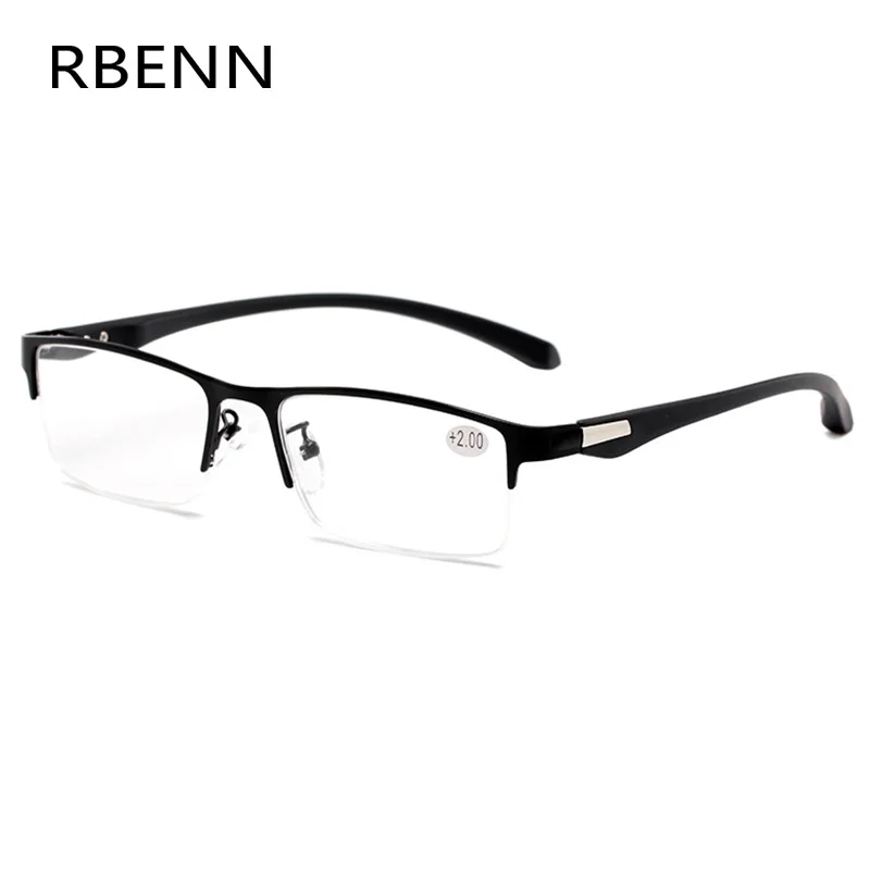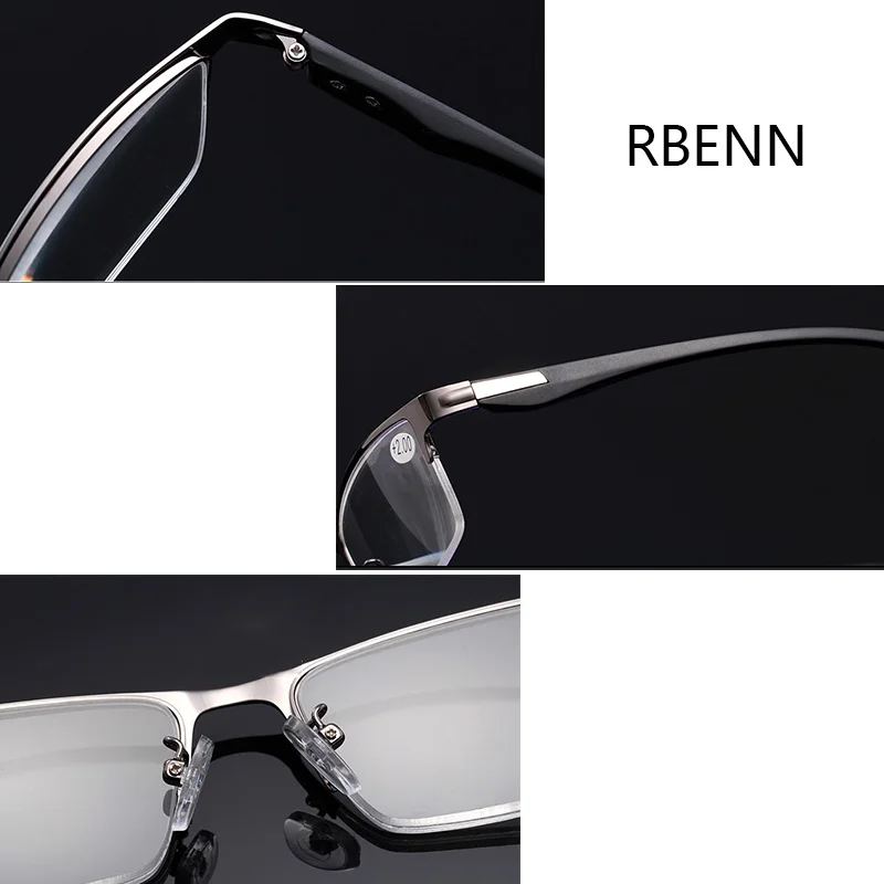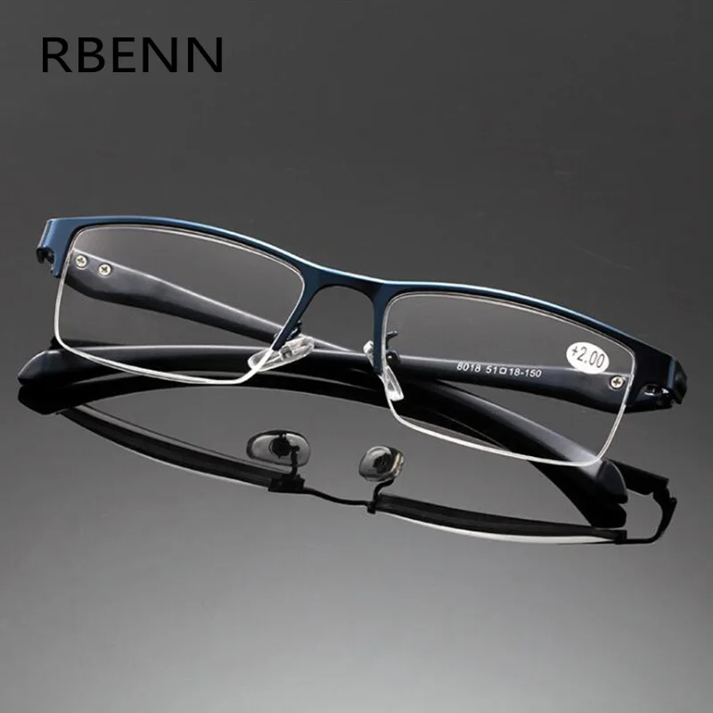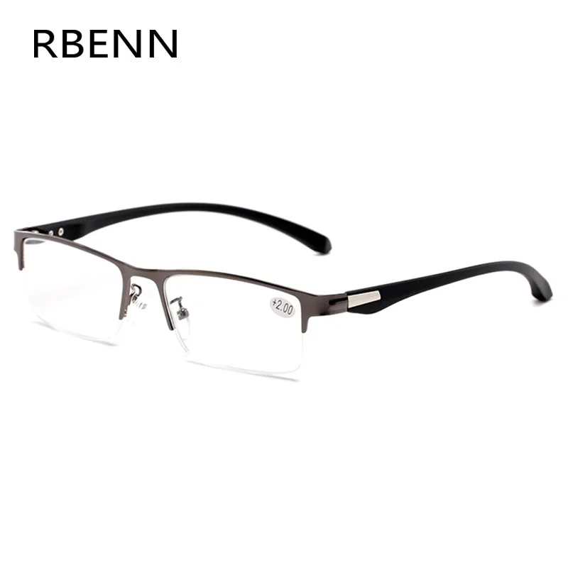 Очки RBENN мужские для чтения в деловом стиле, пресбиопические аксессуары с металлической оправой и полуоправой, с диоптриями + 0,5, + 0,75, + 1,25, + 1,75, + 2,25